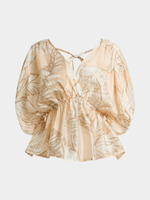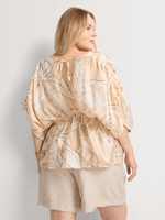 A pretty top is always in style. Wear our Sheer Textured Leaf Print Kaftan Top with denim, wide leg pants, skirts or shorts. Add classic jewellery like a chain necklace and hoop earrings and complete the look with flats or heels.
