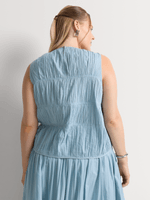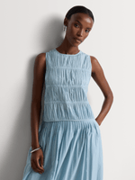 Our Ruched Panelled Shell Top, made from lightweight and breathable cotton, features beautiful ruching for a textured look. Pair it with the matching maxi skirt for an on-trend co-ord look that's perfect for summer.
