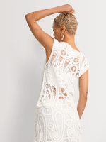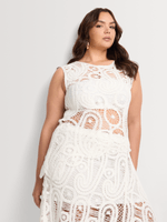 Our Sleeveless Crochet Shell Top is giving elevated beachy vibes. Wear this on-trend top with the matching crochet skirt for a cute co-ord set. Add strappy heels and a mini bag.