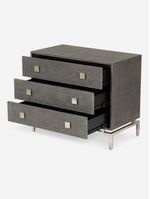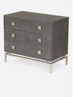 Sophisticated and glamorous, the Shiloh 3 Drawer Chest brings a luxe feel to your living space with its textured faux Shagreen finish and chrome metal. Three spacious soft-close drawers offer plenty of storage for clothing or linens in the bedroom or living area. Display decor on top to bring a personal touch to your space.