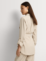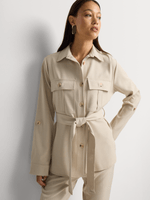 Our Safari Button Down Belted Co-Ord Shirt has a luxe feel with gold-tone buttons and belt detail. Wear it with the matching bottom for an on-trend set.