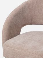 Stylish and inviting, the Siena Dining Chair is fully upholstered with a padded seat and wrap-around back and armrests for support and comfort. The sculptural form with keyhole detail and panel stitching on the back brings an elevated feel to your dining space. The slim black metal legs with subtle brushed brass-capped feet add a touch of glamour.