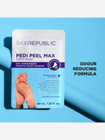 Advanced peeling formulation with high dose Alpha Hydroxy Acids removes hard skin, cracked heels and calluses after just 7 days. Plant Extracts help reduce foot odour and leave feet feeling fresh and dry.
