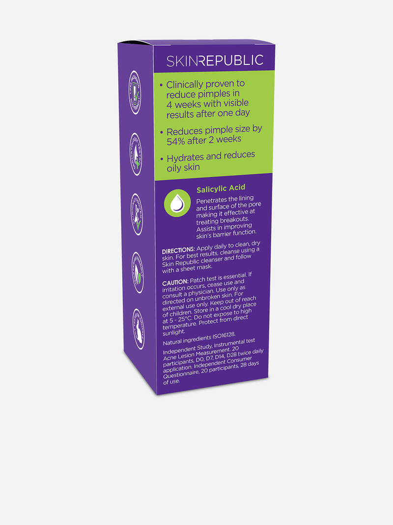 • Clinically proven to clear pimples in 4 weeks with visible results starting after one day