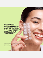 Salicylic acid and tea tree spot patches proven to visibly reduce pimples, swelling and redness.