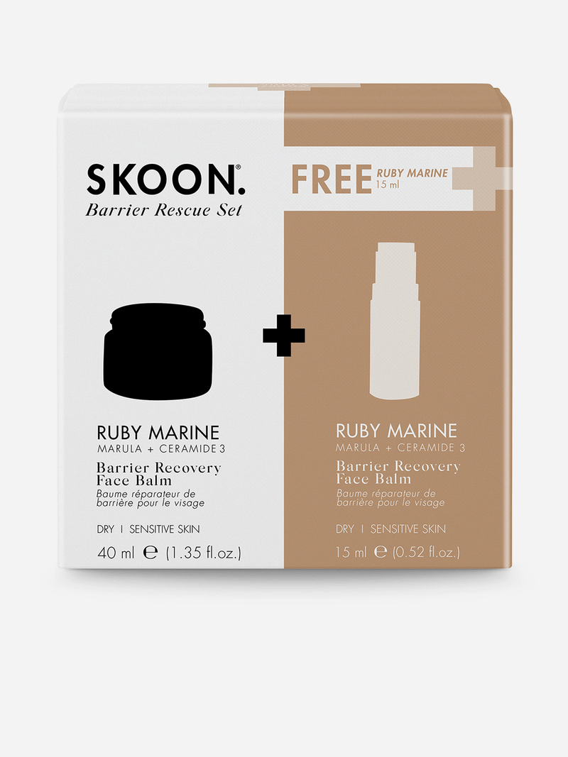 Limited Edition Barrier Rescue Set – Featuring our best-selling Ruby Marine 40ml plus a FREE 15ml Ruby Marine Stick for on-the-go hydration and barrier repair.