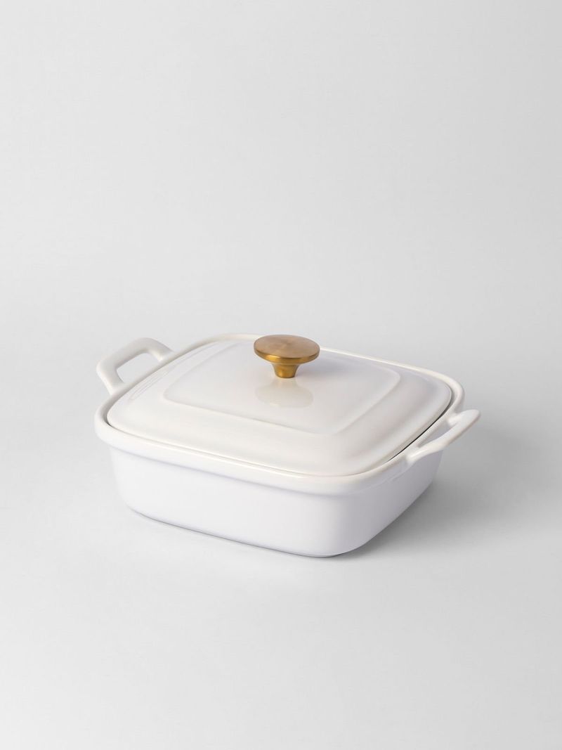 The Skye Square Casserole with Gold Knob lets you serve straight from the oven in style. This beautifully designed and highly functional piece is ideal for roasted veggies, baked desserts or pastas and slow-cooked meat dishes.