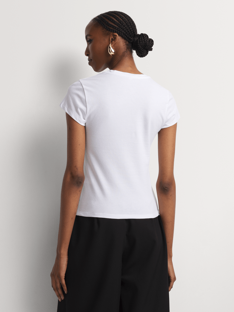 Baby tees are a must-have style this season. Update your tee collection with our Slay Club Baby Tee. Fitted, with a classic crew neck and short sleeves, it's perfect for pairing with wide-leg pants, denim and skirts.