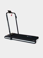 The smart device holder keeps you connected, while safety features like the handlebars and auto stop system ensure a secure workout environment. Fitted wheels allow effortless movement, complementing its space-saving design. Activate and control your speed conveniently with the handheld remote, while enjoying ample space on the 380 x 1000 mm running deck. Ideal for achieving your fitness goals with ease and comfort.