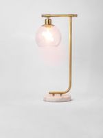 Elegant and sophisticated, our Sleek Glass Ball Desk Lamp brings classic style to your home office or bedside table. A brushed brass metal arm set on a white marble base holds a clear hanging ball shade. Timeless and refined, it elevates any room with its beautiful materials and vintage-inspired design