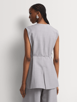 Our Sleeveless Belted Blazer is refined and stylish with its clean lines and elegant detail. Wear it with the matching bottoms for an on-trend suiting-inspired co-ord set. Complete the look with block heels and a mini bag.