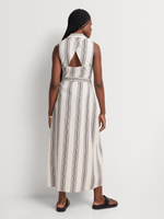 Our Sleeveless Stripe Shirt Dress is made from a lightweight and breathable viscose blend, perfect for warm summer days. Wear it with pumps for casual yet polished office attire, or on the weekend with sneakers or sandals.