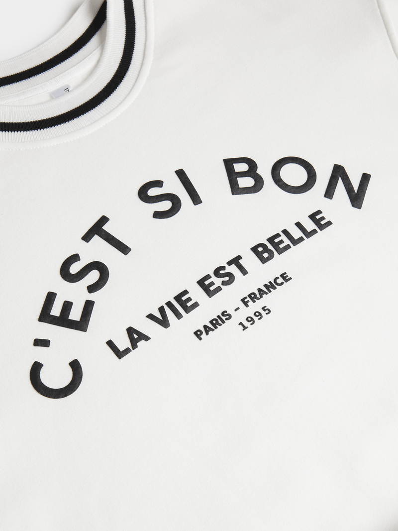 A Slogan Sweat Top is a winter essential. Wear this on-trend piece with everything from jeans and sneakers to maxi skirts and heels. Made from a cosy cotton-blend fleece, it will keep you warm in style.