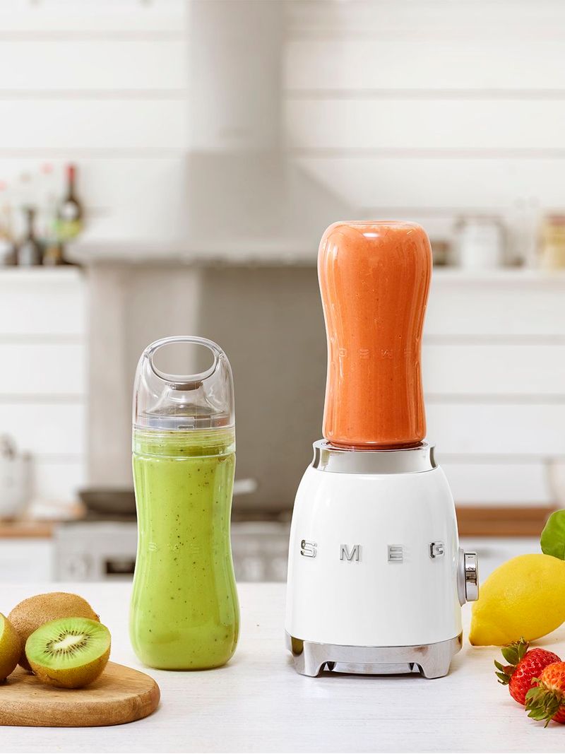 The Smeg Personal Blender makes getting healthy easier. Its compact design makes it ideal for smaller spaces while the stylish range of colours and iconic retro SMEG design elevates your kitchen counter. It has two speed levels and a double blade, ideal for blending shakes or smoothies that you can drink directly from the conevenient 600ml cup or pop a lid on and take it to-go.