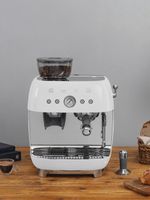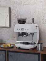The Smeg All in one Espresso Coffee Machine brings cafe-quality coffee to your countertop and Smeg's signature style to your kitchen with its retro-inspired design. The built-in grinder and steam wand give you an at-home barista experience for authentic espressos and delicious milk-based drinks. A 20-bar pump pressure gives you a true Italian espresso, with functions for single and double shots.