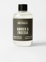 Rare, surprising, and sophisticated, scent your space with the Smith & Co Diffuser in Amber & Freesia. The minimalist green glass lidded jar holds a long-lasting scent offering a juxtaposing aromatic aroma of lush wild berries, blooming freesia and jasmine, contrasted with a heart of warmed amber and dark woody base. The perfume travels up the slim diffuser reeds to infuse your home with its floral gourmand aroma.
