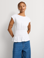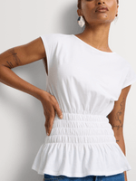 Our Smocked Waist Fashion Top adds interest to your outfit with smocking detail. Wear this lightweight and breathable top with wide-leg pants, jeans or skirts this summer.