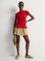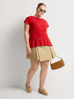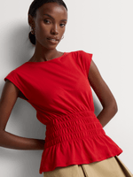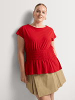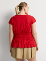 Our Smocked Waist Fashion Top adds interest to your outfit with smocking detail. Wear this lightweight and breathable top with wide-leg pants, jeans or skirts this summer.