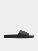 Introducing the Sneaker Factory Embossed Black Pool Slides with a fabric PVC construction. These slides are returnable and perfect for casual wear. Elevate your footwear game with these versatile slides.