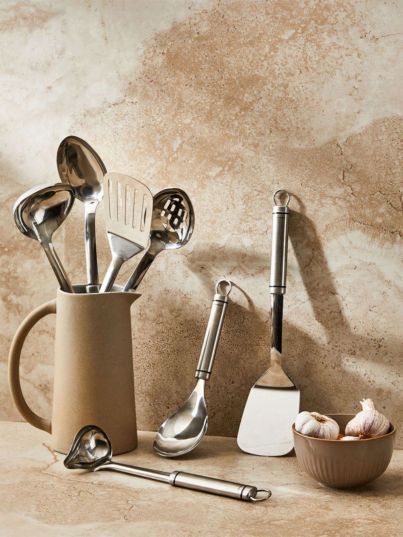 The Soffritto A Series Potato Masher. Crafted from high-quality 18/10 stainless steel, it delivers durability and precision for professional-level performance. The ergonomic handle ensures a secure, comfortable grip. It's dishwasher safe for easy clean up, with a hanging loop for convenient storage.