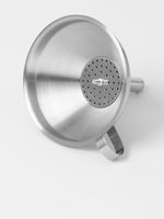 Strain sauces, oils and more with the innovative Soffritto A Series Stainless Steel Funnel with Strainer. Designed with a narrow spout that fits into most bottles, this essential kitchen accessory allows you to easily funnel liquids without mess. It features a removable strainer, which is great for transferring homemade sauces, marinades, oil or beer into bottles without residue. Made from high-quality stainless steel, this funnel is designed for long-lasting durability.