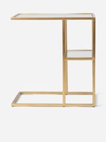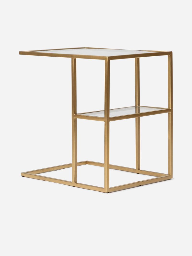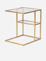 The Sofia Sofa Side Table brings practical elegance to your seating with a clever design and a luxe, timeless aesthetic. A brass-plated metal frame paired with durable tempered glass gives this piece a classic look. The thoughtful design slides over your sofa for a convenient surface to rest drinks & snacks.