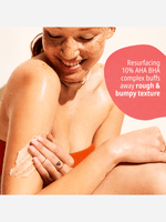 A resurfacing body scrub infused with a 10 percent AHA BHA Resurfacing Complex to visibly improve clarity, tone, and texture for smooth, radiant-looking skin.