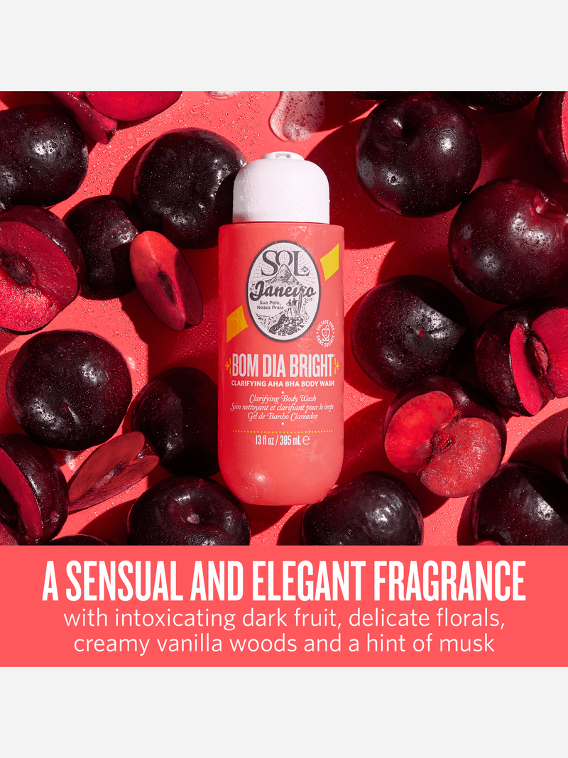 A daily AHA BHA body wash infused with gentle fruit-derived Alpha Hydroxy Acids and Salicylic Acid to help clarify pores and leave skin feeling clean, soft and rejuvenated. A sulfate-free shower gel that leaves you with a balanced, glowing complexion all over your body—with a warm, sultry scent. This is skincare for your body.