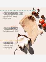 A soft-as-sand body scrub that gently exfoliates and moisturizes with crushed cupuaçu seeds and sugar crystals for summer-smooth skin year round.