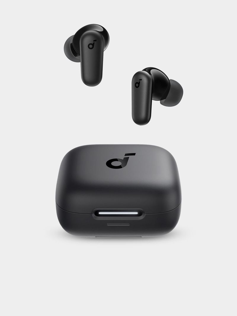 Soundcore by Anker R50i NC True Wireless Earbuds. Strong and smart noise cancelling. Powerful bass. Up to 45 hour playtime. 2-in-1 case and phone stand. IP54 splash proof. Bluetooth 5.4. Black in colour.