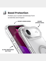 The Presidio® Perfect-Clear MagSafe® case is our clearest, most protective, and pocket-friendly design yet—crafted to deliver both stunning clarity and serious durability. Made with innovative materials that resist yellowing over time, it keeps your phone looking pristine longer. Despite its slim profile, this case offers powerful protection with our proprietary clear cushioning rubber that compresses on impact to help absorb shock and prevent damage from drops—proven to withstand falls from up to 13 feet. Built-in precision magnets ensure seamless compatibility with all Apple MagSafe® chargers and accessories, so charging and snapping on accessories is effortless. For added peace of mind, a raised bezel guards your screen against scratches and cracks from face-down drops. And with a newly redesigned button structure, you’ll enjoy a more satisfying click and responsive feel every time.