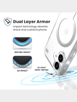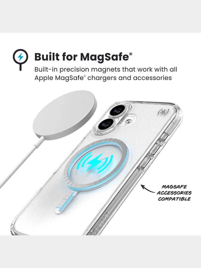 The Presidio® Perfect-Clear MagSafe® case is our clearest, most protective, and pocket-friendly design yet—crafted to deliver both stunning clarity and serious durability. Made with innovative materials that resist yellowing over time, it keeps your phone looking pristine longer. Despite its slim profile, this case offers powerful protection with our proprietary clear cushioning rubber that compresses on impact to help absorb shock and prevent damage from drops—proven to withstand falls from up to 13 feet. Built-in precision magnets ensure seamless compatibility with all Apple MagSafe® chargers and accessories, so charging and snapping on accessories is effortless. For added peace of mind, a raised bezel guards your screen against scratches and cracks from face-down drops. And with a newly redesigned button structure, you’ll enjoy a more satisfying click and responsive feel every time.
