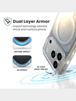 Presidio® Lux MagSafe® stands out with the addition of Lux design elements—like prints or iridescent shine—that are certain to resist fading, scratching, and will not wear off. Highly protective, yet slim, this case is pocket-friendly and is built with precision magnets that work reliably with all Apple MagSafe® chargers and accessories. Our proprietary, clear phone-cushioning rubber compresses on impact to protect your phone and resist damage. These cases have been tested in the real world to withstand drops of up to 13 feet, so you will be confident knowing your phone will be protected. If that was not enough, it also features our raised bezel—an added edge that helps protect your screen from scratching and shattering if, and/or when, your phone falls and lands face-down. It also has a built-in antimicrobial treatment that reduces bacteria growth, creating a cleaner surface.