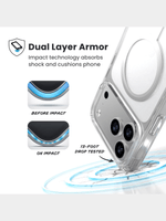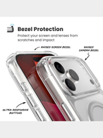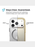 The Presidio® Perfect-Clear MagSafe® case is our clearest, most protective, and pocket-friendly design yet—crafted to deliver both stunning clarity and serious durability. Made with innovative materials that resist yellowing over time, it keeps your phone looking pristine longer. Despite its slim profile, this case offers powerful protection with our proprietary clear cushioning rubber that compresses on impact to help absorb shock and prevent damage from drops—proven to withstand falls from up to 13 feet. Built-in precision magnets ensure seamless compatibility with all Apple MagSafe® chargers and accessories, so charging and snapping on accessories is effortless. For added peace of mind, a raised bezel guards your screen against scratches and cracks from face-down drops. And with a newly redesigned button structure, you’ll enjoy a more satisfying click and responsive feel every time.