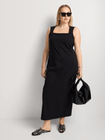 Our Square Neck Side Ruche Column Dress is made from figure-hugging cotton stretch fabric for a comfortable fit. Wear it with flats for a casual look, or dress it up with heels.