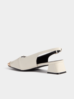 Our Square Toe Metal Tip Sling Back Block Heels are a smart and practical choice for the office. The low block heel is elegant yet comfortable, ideal for pairing with smart trousers or skirts.