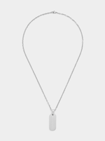 Icon's stainless steel pendant and chain set features a sleek matte rectangle tag design. Made from fine jewellery materials, it is durable and stylish. With a length of 55cm, this necklace is perfect for everyday wear. Enjoy free returns and discounts with our exclusive staff code. Elevate your look with this versatile accessory.