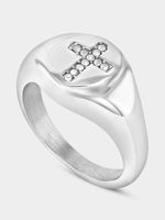 Add a touch of sophistication to your look with this stainless steel signet ring featuring a sparkling cubic zirconia cross design. Crafted with quality materials, this ring is perfect for everyday wear and special occasions. Elevate your style effortlessly with this stunning accessory. Stainless Steel is a scratch resistant, hypoallergenic and well-priced metal.