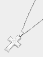 Elevate your style with this sleek stainless steel cross pendant featuring sparkling cubic zirconia stones. The cross within a cross design adds a unique touch. Comes with a 55cm chain for easy wearability. Perfect for everyday wear or as a thoughtful gift.