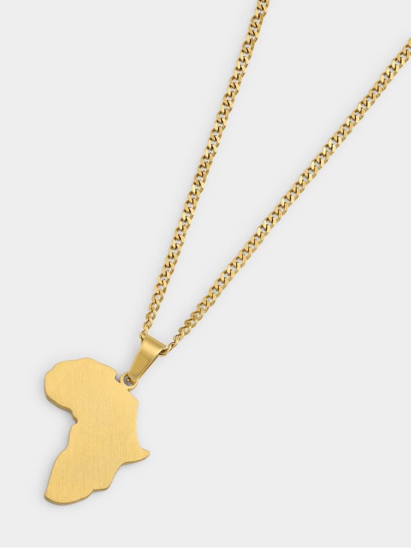 This meaningful Africa pendant on a chain is expertly crafted in Gold Plated Stainless Steel. Stainless Steel is a scratch resistant, hypoallergenic and well-priced metal.