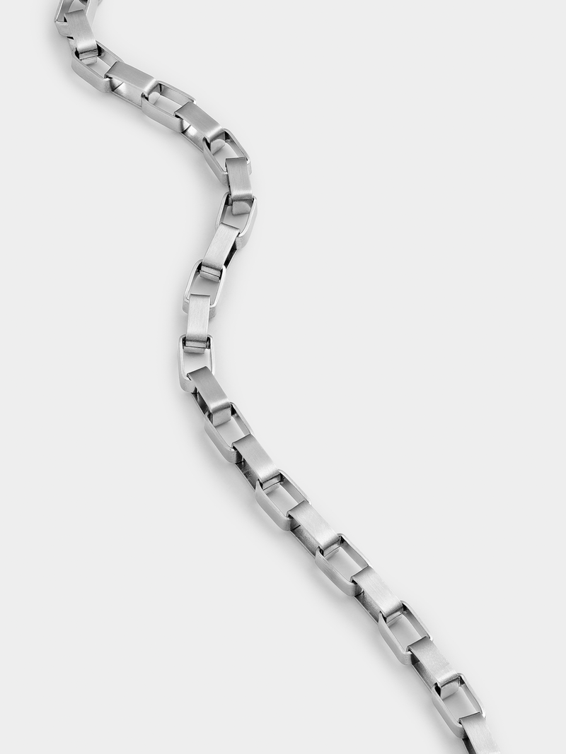 This stylish 21cm open box link bracelet is expertly crafted in matte Stainless Steel. Stainless Steel is a scratch resistant, hypoallergenic and well-priced metal.