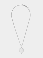 This stylish shield pendant on a 65cm chain is expertly crafted in matte Stainless Steel. Stainless Steel is a scratch resistant, hypoallergenic and well-priced metal.