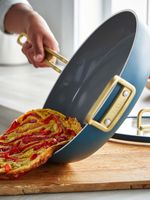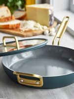 GreenPan’s all-new woven induction base stays flat and delivers superior results on all stovetops. Each aspect of this pan was individually considered for daily use, from the cast stainless-steel handle to the oven safe efficiency. It’s cookware for people, like Stanley Tucci, who love to cook.
