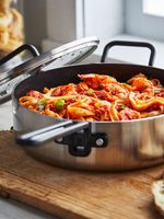 The Stanley Tucci By Greenpan 26cm Skillet with Lid is ideal for high-heat cooking and gentle simmering, a versatile addition to your kitchen. Stanley Tucci partnered with GreenPan to create a cookware collection from the ground up, focusing on innovations that take cooking to the next level. Made in Italy at GreenPan’s high-tech facility, these pans blend refined architectural details with pioneering technology.