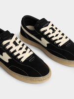 New for SS26, a unique low-profile cupsole with mono-sidewall proportions and plenty of S.W.C design DNA. Cushioned underfoot and flexible. Made with soft black suede and featuring contrast cream leather S-Strike trim on our translucent honey rubber sole. Upper pattern design is inspired from our iconic DELLOW sneaker with new details and differences including forepart arch stitch detailing, paired-back heel backstrap, new tongue panel construction, and debossed suede 'flipped' branded tongue labels.(supplier Style:YR02015)
