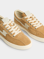 New for SS26, a unique low-profile cupsole with mono-sidewall proportions and plenty of S.W.C design DNA. Cushioned underfoot and flexible. Made with soft black suede and featuring contrast cream leather S-Strike trim on our translucent honey rubber sole. Upper pattern design is inspired from our iconic DELLOW sneaker with new details and differences including forepart arch stitch detailing, paired-back heel backstrap, new tongue panel construction, and debossed suede 'flipped' branded tongue labels.(Supplier Style:YR02275)