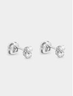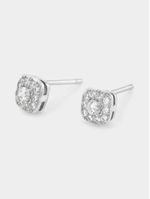 Expertly crafted in Sterling Silver, these radiant stud earrings feature round-cut Lab Grown Diamond in a cushion-shaped halo setting. The total Diamond weight is 0.25 carats.