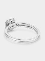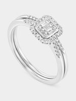 Expertly crafted in Sterling Silver, this alluring twinset ring features an emerald-shaped cluster of baguette-cut Lab Grown Diamond embraced by a halo of single-cut stones that also sparkle on the bands. The total Diamond weight is 0.26 carats.