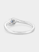 Expertly crafted in Sterling Silver, this beautiful ring features a round-cut blue Cubic Zirconia embraced by a swirling band glittering with pavé set white stones.