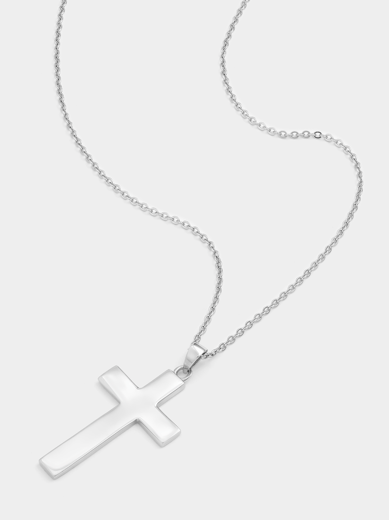 This bold cross pendant on a chain is expertly crafted in polished Sterling Silver.